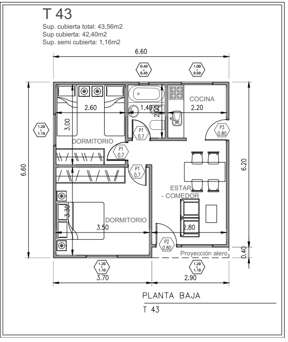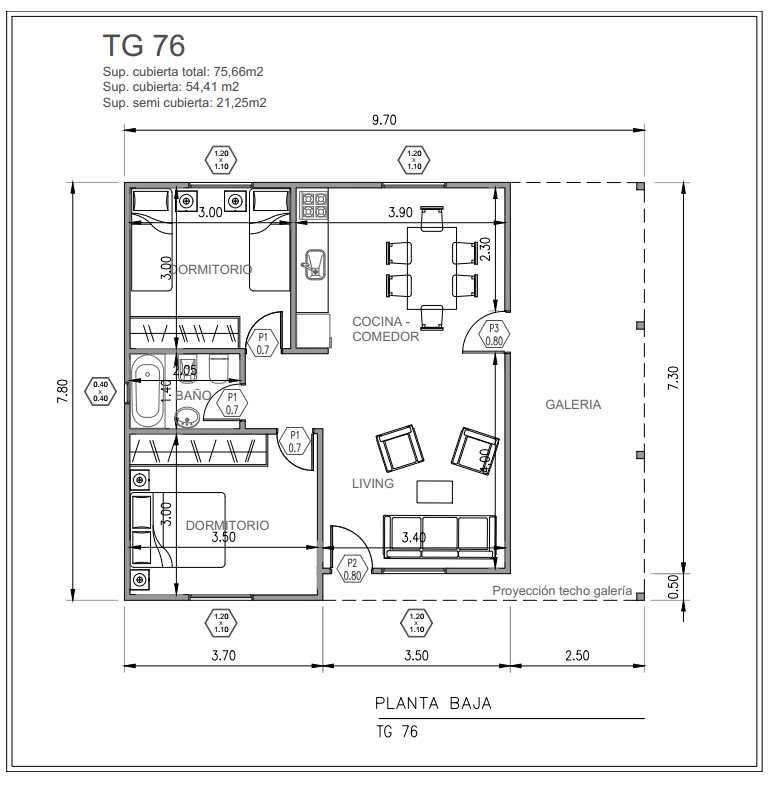 55m2 cubiertos 21m2 semicubiertos 2 habitaciones 1 baño cocina comedor