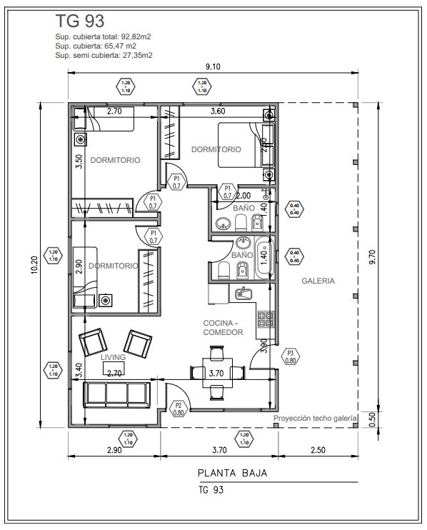 66m2 cubiertos 27m2 semicubiertos 3 habitaciones 2 baños cocina comedor